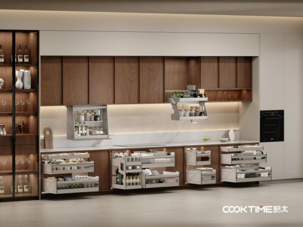 基于对厨房生活的深刻理解和前瞻洞察,酷太创新提出“收纳型橱柜”理念,将橱柜本身应当具备收纳功能归正,从单纯的存放转变为高效、有序、美观的收纳系统,橱柜内置空间进行科学合理分区布局,扩大空间利用率,让品类多元的厨房用品各得其所,带来便捷的取用体验,减轻烹饪压力,将厨房塑造成充满秩序和美感的生活场所。