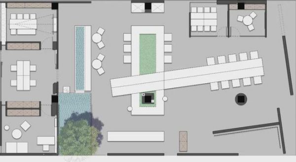根据空间的性质,我们将公共区塑造成全开放的状态,综合咖啡、会议、办公、接待、宣发等功能,打造了一个复合型空间,满足不同人群的需求;并结合水榭、景观等传统元素,将江南情致注入空间,让人们能感受到浓厚的人文气息。
