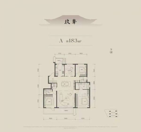 183㎡边户:四叶草户型,北向有和厨房联通的阳台。双套房设计,主卧是落地窗,带浴缸,南向次卧有单独的家政间,北向卧室还有多功能厅,当儿童房非常合适。