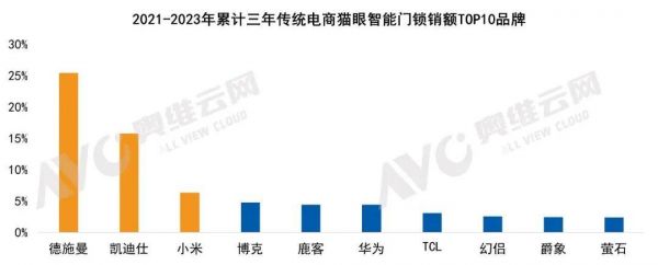 这些创新不仅保证了用户的安全及使用体验,也促进了德施曼品牌的市场发展。奥维云网(AVC)线上监测数据显示,在2021年至2023年这三年间,传统电商猫眼智能门锁市场中,德施曼品牌凭借25%的零售额占比、16%的零售量占比,包揽了零售额与零售量市场的双第一,稳居首位。零售额品牌榜单中排名第二的品牌为凯迪仕,第三为小米。