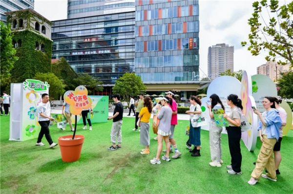 上海长宁来福士门庭若市,长长的队伍中,上班族与年轻人居多,不时举起手中的摄影设备,拍摄会场中央引人注目的巨型发光装置——向日葵、四叶草、仙人掌……一棵棵本不该出现在闹市中的巨大植物发出沁人心脾的淡淡光晕,让人忍不住一探究竟。