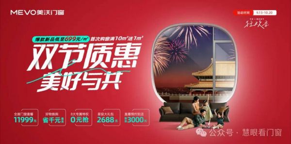 9月13日-10月20日,美沃门窗以“双节质惠 美好与共”为主题,联动线上线下推出王炸组合:100内开窗 699元/㎡和112外开窗699元/㎡。