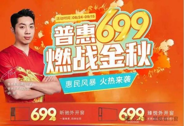 8月24日-9月15日帝奥斯门窗举行了“普惠699 燃战金秋”促销活动,推出了昕驰外开窗和臻悦外开窗产品价格均为699元/㎡!