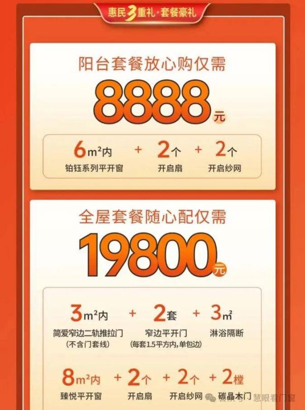 虽然在目前价值通缩,房价和生活物资等各类物品价格下降的情况下,降价给予消费优惠有一定的必要性!但是通过以上统计我们可以发现,在行业这种赤裸裸的单品价格战面前一切高端定位和品牌定位全都被摧毁,品牌门窗的爆款价格区间锁定在599-799!就像当面全屋定制行业索菲亚推出799/㎡特价衣柜套餐一样,给消费者形成的购买门窗的价格铆定在799元/㎡,以后会成消费购买门窗评判价格的标准!而欧派当年推出的19800元套餐,通过多品类组合优惠从而模糊产品单价,以及或者通过买赠或者、升级配置、产品性能等来模糊单品价格,从而保护门窗这个品类在消费者心中的价值!