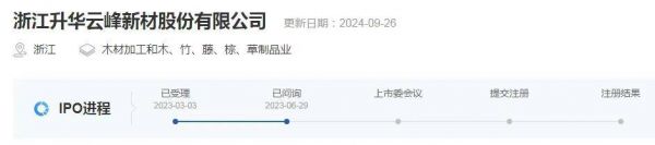 9月26日,浙江升华云峰新材股份有限公司(简称:云峰新材)IPO状态变更为“中止”。因云峰新材发行上市申请文件中记载的财务资料已过有效期,需要补充提交。根据《上海证券交易所股票发行上市审核规则》第六十条有关规定,上交所中止其发行上市审核。