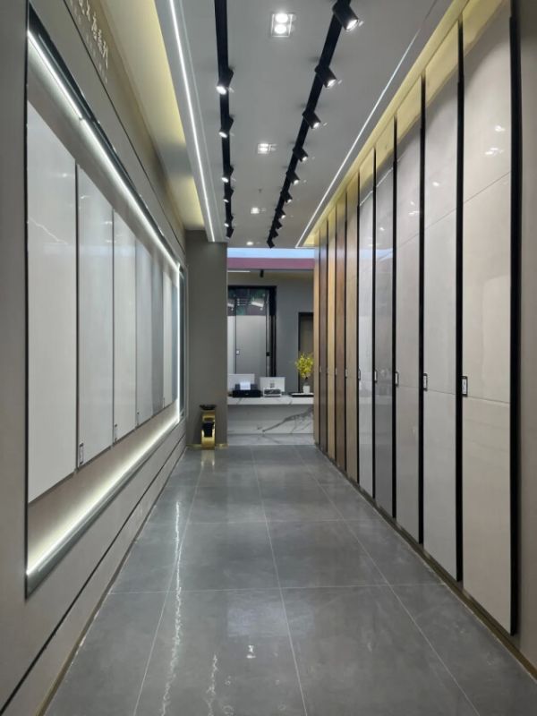 开放式选材区布局,简洁明快的线条勾勒,整齐划一的产品排列,艺术感十足。鹰牌陶瓷规格多样、品类齐全的产品体系,在柔和灯光的映照下,每款产品的纹理与光泽一一呈现,营造出轻松舒适的选购体验,满足顾客对理想人居的无穷想象。