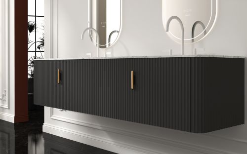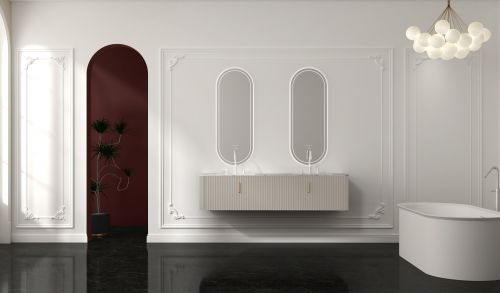 马利克浴室柜的设计灵感,源自法式建筑的优雅精髓与精致工艺,它巧妙地融合了法式古典的浪漫韵味与现代审美的简约风尚,演绎出一种超越时代界限的优雅艺术美学。其立体波浪型柜门设计,在视觉上营造出丰富的层次感,不仅美观大方,还能有效防止转角处的尖锐磕碰,为日常生活增添一份安全与舒适。