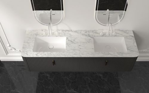 为了满足现代家庭对于收纳空间的需求,马利克浴室柜特别设计了双台盆和双大抽屉的组合。双台盆方便双人同时洗漱,不仅缩短了早晨的忙碌,更拉近了彼此的距离,让这份日常的琐碎也充满了温馨与默契。而双大抽屉则提供了充足的收纳空间,洗漱用品和日常杂物都能井然有序地摆放其中,让每一次寻找都变得轻松高效。