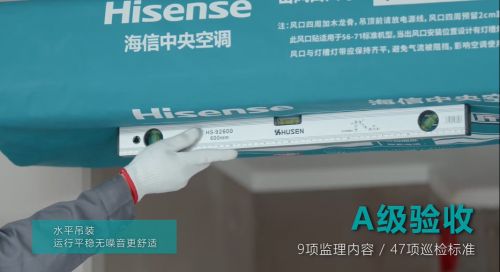 作为当代新国品代表,海信中央空调为了给消费者打造放心买、省心装、安心用的靠谱感受,在安装方面,匠心打造5A级工地品质。