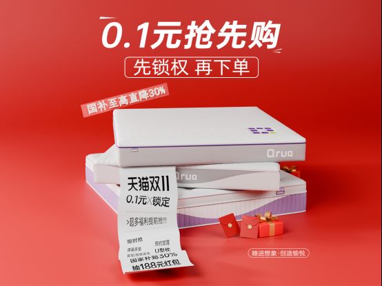 Qrua巢物主理人透露,本次将预先推出“0.1元预约双11”活动,以先锁权再下单的形式,提前锚定有家居需求的精准消费人群。其中,多重专属权益惊喜加码,参与0.1元预约即可提前抢定3重好礼,其中包括纯棉磨毛床笠、纯棉四件套等双11下单礼赠,以及前4小时下单即可享一对超弹透气枕。
