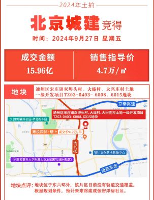 上周京楼又成交一宗新地,北京城建以15.96亿底价拿下了通州宋庄镇地块,我猜测将来大概率产品会和金地壹街区差不多,户型面积段偏改善,之前壹街区的成交均价在4.4-4.5万左右,不过这次城建的楼面价比金地更低,将来应该会在装标上做出更好的产品,同时也能给购房者做出更多的让利空间我觉得这事挺好。