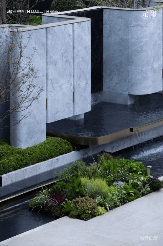 琥珀色的琉璃景墙,在变幻的光影中阅读艺术的真谛,如鳞翼般的瑰丽色彩,在这里成为迎接主人归来的华贵照壁;耸然高立的石材景墙,保留着天然留存的纹理,经由多层繁冗工序打磨出质感光泽,如仪仗阵列般排布成归家的礼仪。优美的弧线勾勒出礼序的动线,精致的千鸟格静水面与漂浮弦桥呼应成趣,郁香流动的臻享归家路,让回家的脚步不觉放缓,静心感受这座“收藏家花园”的雅奢与从容。