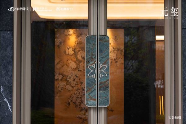 单元入户大堂立面以大面积曲面定制玻璃与圆弧形石材相结合,一面是通透的高级感,一面是庄重的尊崇感;大堂门头同样以香槟金色金属材质打造,相承弧线的美学设计,同步又以专属定制的特色纹样铺装;北向入户大堂约4.2米高挑空,首层大堂地面及墙面均采用石材铺贴,地面全铜LOGO,并且设置地热设施;精心推敲的尺寸比例,奢华归心的出入礼遇,既是对匠心的顶礼,也是对艺术的赤诚。
