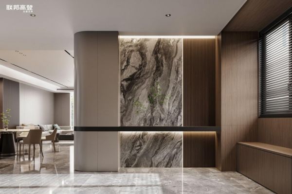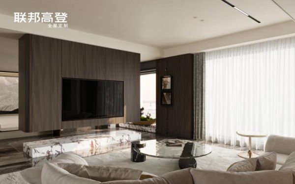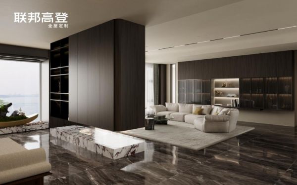 联邦高登在电视柜高档设计中,频频运用悬挑设计手法,将温润细腻的原创花色【流水】与气场恢宏的大理石地台巧妙融合,自然光线下视觉通透轻盈,尽显新贵阶层的非凡品味与高雅格调。