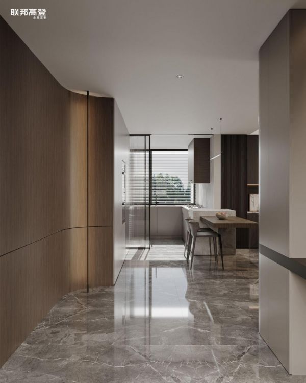 联邦高登精心打造的这套高定餐厨一体设计案例中,便完美应用这一工艺精髓,精心选配原创【旷野】花色点缀其间,配以柔和的弧面过道,使得餐厨空间洋溢着温馨和谐的氛围。圆润的边角设计,不仅增强了柜体的耐用性,更在每一次触碰间,传递出温暖舒适的感受,让用餐时光更加惬意美好。