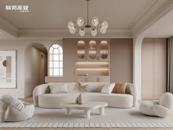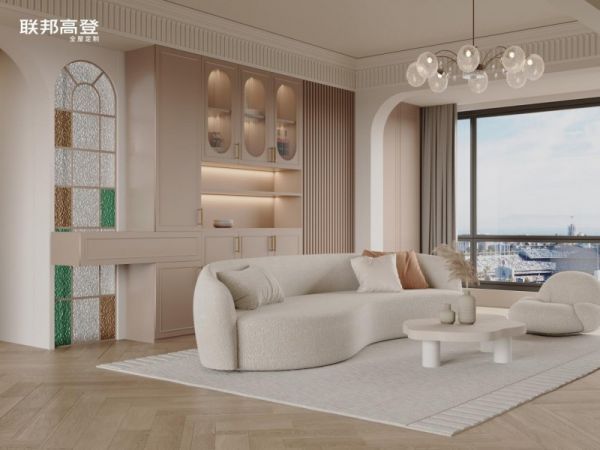 在联邦高登这套轻法式风格的高档客厅空间定制设计方案中,便娴熟运用穿插工艺,巧妙地将多功能组合柜与拱门玄关装饰区融为一体,此番设计不仅实现了储物空间的优化配置,更在视觉层面丰富空间的层次感与艺术韵味。踏入客厅的那一刻,访客仿佛穿越至浪漫巴黎,被这份由内而外散发的轻法式浪漫与复古情调所包围。