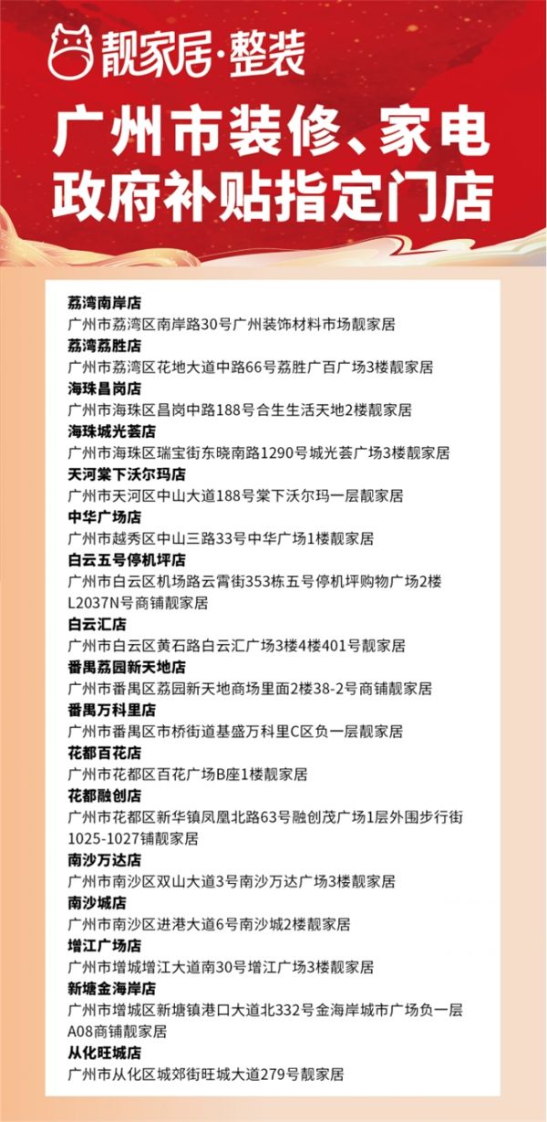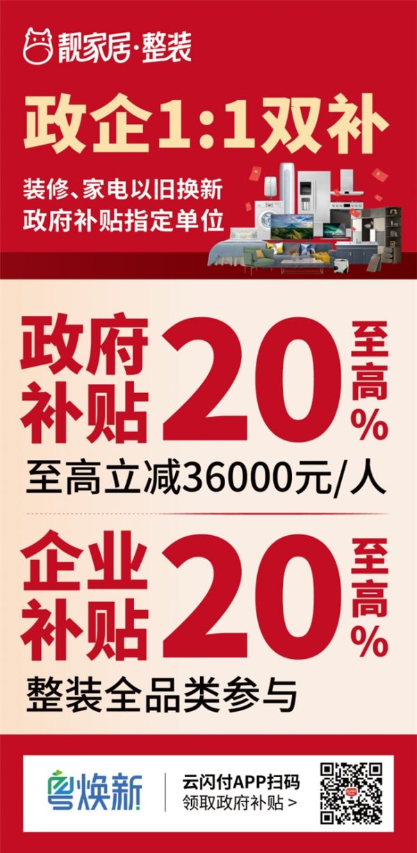 靓家居作为23年整装连锁大品牌,是装修、家电“以旧换新”政府指定补贴单位。只要近期到靓家居做整装或装修,购买旧房装修和厨卫局部改造类产品、居家适老化改造类产品、智能家居类产品共43类给予装修补贴,每人补贴20%最高立减20000元;一级和二级能效(水效)的8类家电给予补贴,至高补贴20%立减16000元/人!消费者符合条件即可成功申请补贴!靓家居做到全程服务,协助办理补贴申请,帮业主争取政府至高补贴。