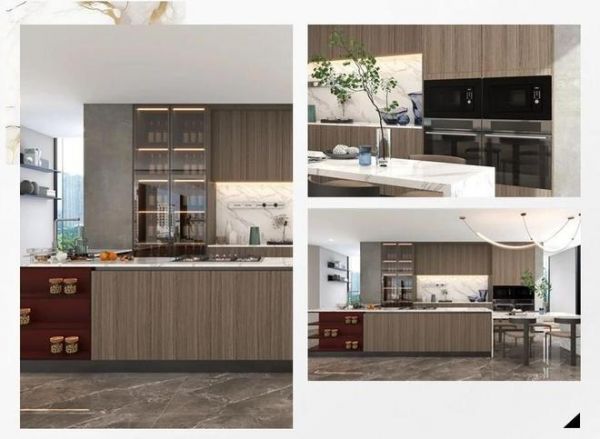 通过吊柜、地柜、玻璃柜门等多种搭配