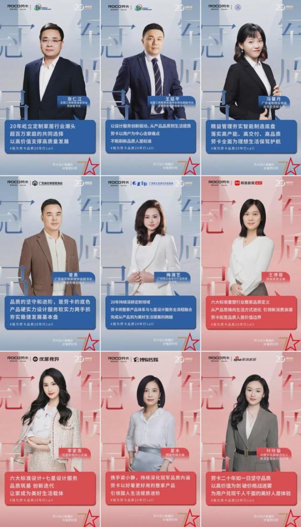 此外,全国工商联家具装饰业商会、广东省制造业协会、广东省定制家居协会、广州市工业设计行业协会等行业协会领导及新浪家居、腾讯优居、网易家居、博骏传媒等垂类媒体也为劳卡的品质进阶打call。纷纷表达了他们对劳卡坚守初心,完成从产品品质到生活品质深度跨越的认可。