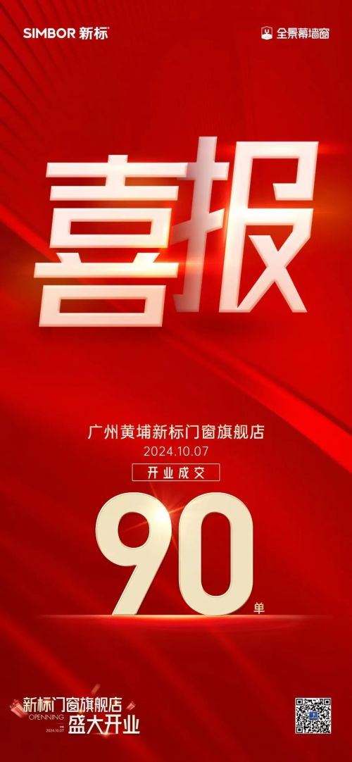 此外,新标门窗广州黄埔旗舰店开业盛典,在新标门窗总部的精准赋能下收获了满意佳绩!新标门窗专业帮扶团队通过对当地市场进行考察,对门店人员作出针对性、重点性的系统培训,以产品品质制胜、线上线下引流蓄客、新媒体传播造势等科学部署和统筹安排,全方位提升终端门店的核心竞争力,为经销商快速签单提供强有力的保障。在新标门窗总部的支持和广州黄埔旗舰店的努力下,门店开业当天喜签订单90单,收获了好业绩、好口碑!