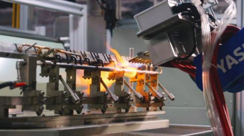 自动化焊接环节,海信日立行业自研首创多点焊接、不等加热、高精度视觉引导和参数补偿方案,实现用工提效63%,焊接不良率下降57%。物流环节,史无i前例地将“天车”引入空调行业,采用空中物流即时配送系统的方式,替代传统悬挂链方式,提高物流效率。