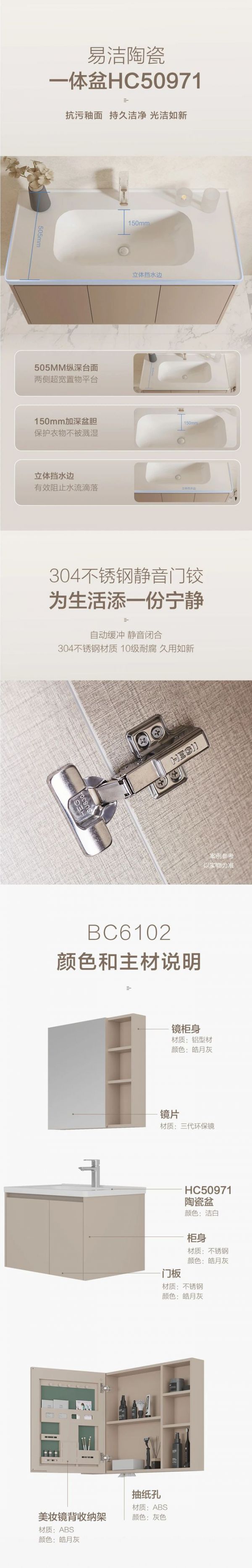 新品上市恒洁BC6102浴室柜,诠释金属之美。 防水金属,百变收纳,精致实用。