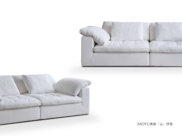 莫语「云」沙发以其大抱枕、大靠包、大坐深的独特设计,结合80%狮头鹅绒和欧洲水洗亚麻月光布的高端面料,为用户带来前所未有的舒适体验。面料通过采用莫语净渍技术,有效防水防污,同时保持其耐用性。