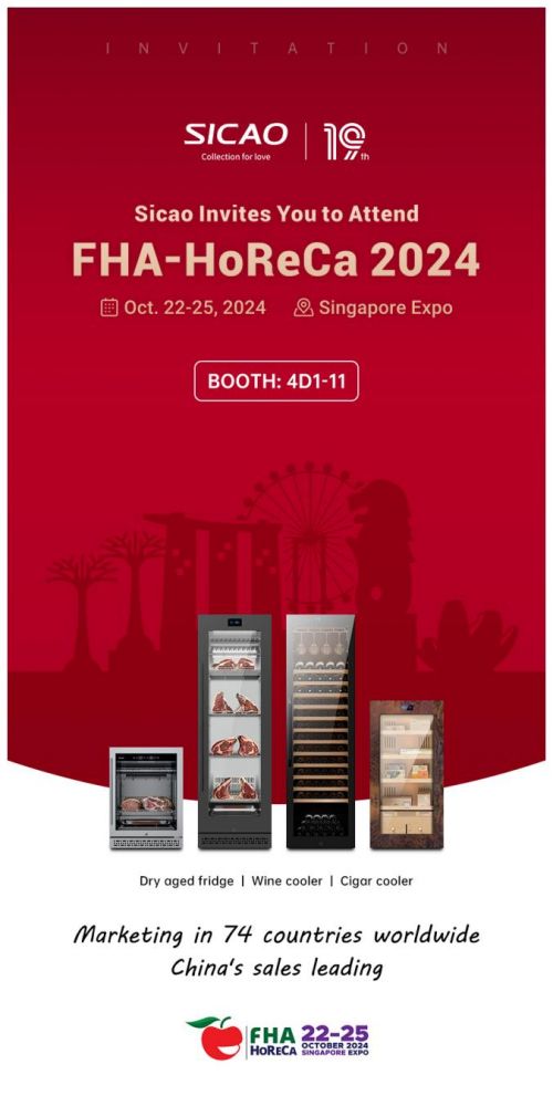 黄金10月,2024年新加坡酒店用品及餐饮设备展览会(FHA HoReCa)将在新加坡博览中心盛大开幕。作为亚洲领先的食品与招待行业贸易展,FHA HoReCa 2024预计将吸引超过45,000名来自70个国家和地区的专业人士、以及800多家来自30个国家和地区的参展商,SICAO也将携实力产品和潜力新品出席,届时欢迎各酒店、餐饮业及食品行业从业者和爱好者前来观展,共襄盛举,一起探索干式熟成的无限潜力未来。