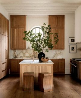 设计师用业主丰富的艺术藏品装点墙面,精选跨时代的摄影佳作,为空间增添了深厚的艺术氛围。开放式厨房移除两室间的隔墙,营造更为宽敞明亮的效果。浅色调的木质橱柜与地板和谐相融,大理石防溅板与圆形窗户则为整体设计增添戏剧化的亮点。