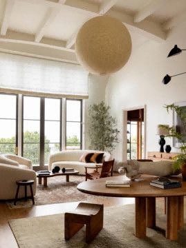 米白、棕褐及灰黑等温和而深邃的自然色彩笼罩空间,家具与装饰品的挑选秉持着极简主义的流畅线条感。