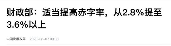 回看2020年我们的财政赤字率由2.8%提升至3.6%.