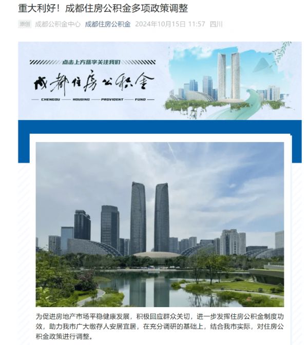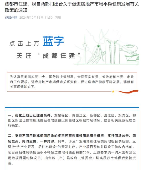 10月15日上午,成都市住房和城乡建设局、成都市规划和自然资源局、成都市发展和改革委员会、成都市公安局、成都住房公积金中心联合召开涉及房地产、落户等方面的政策沟通会。随后,“成都住建”和“成都住房公积金”微信公众号先后发布相关政策调整的通知。