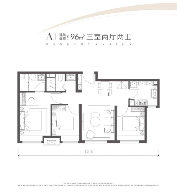 1、96平南向三居,客厅、三个卧室、厨房都朝南,南向整体面宽13.1平,采光面最大化,可以更好的享受阳光和风景