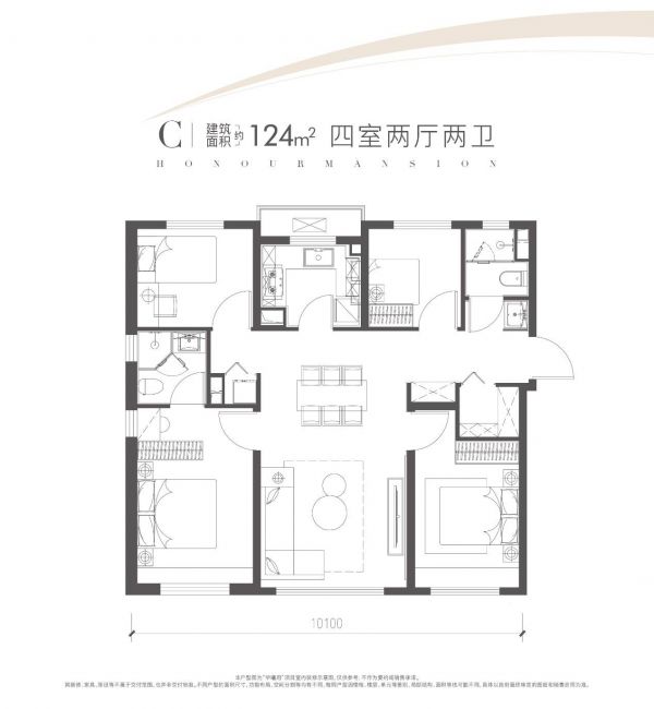 1、124平南北通透四居,经典的四叶草户型,户型方正,浪费面积少