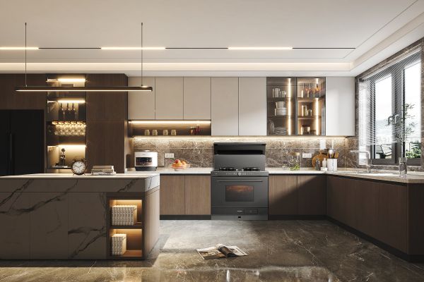 在选择集成灶之前,她也了解过一些其他品牌,但最终还是选择了火星人。这其中有几个原因:首先是熟人的推荐,亲戚使用的就是火星人集成灶,这让她对于品牌有了初步信任。其次,火星人在集成灶领域响当当的名气,也增加了她的好感度。最重要的是,当她看到 X5 Pro 的参数和外观时,她被深深地吸引了。对于住在 20 楼的她来说,X5 Pro 的风压和吸力足够强大,能够满足开放式厨房的需求,而且烤箱容量也很大,外观设计还和其家里的黑白简约风格十分搭配,这为打造她理想中的未来家厨房提供了可能。
