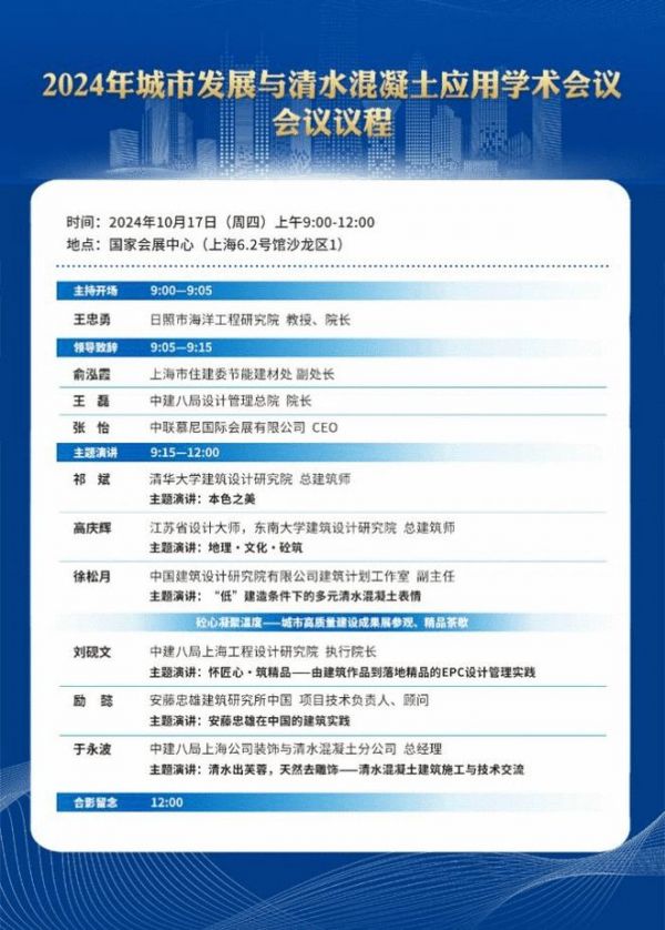 10月17日,2024年城市发展与清水混凝土应用学术会议在国家会展中心成功举办。本次会议是“亚太建筑系统解决方案超级联展”中CADE建筑设计博览会精品沙龙之一,旨在深入学习贯彻党的二十大精神,全面践行打造宜居韧性智慧城市的目标,积极响应城市发展新理念新趋势,促进行业高质量发展。