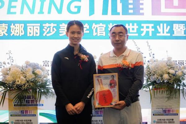蒙娜丽莎美学馆的开业,特受到蒙娜丽莎集团、成都富森美家居的各位领导重视,特意邀请到乒乓球世界冠军张莹莹来到活动现场,专程来与球迷们零距离接触!活动现场,董事长何晓勇作为乒乓球狂热爱好者,与冠军张莹莹双方互赠礼品代表美好祝愿,也寓示着本次活动成为四川蒙娜丽莎与世界乒乓球文化交流融合的载体。