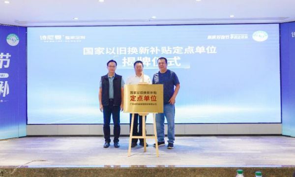 国家有号召,人民有需求,诗尼曼有行动!在嘉宾、媒体以及消费者的共同见证下,广州市商务局秩序处处长胡军斌、番禺区科技工业商务和信息化局副局长梁晓生、诗尼曼家居董事长辛福民共同上台为诗尼曼成为《国家以旧换新补贴定点单位》揭牌。