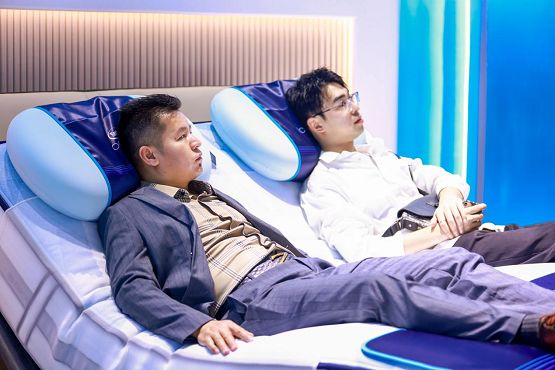 如果嘉宾们在享受舒适的过程中感到困倦,完全可以使用舒达iComfort智能床的放松模式,一键进入哄睡状态,四段式智能助眠,让来宾如摇篮里哄睡,怀抱式支撑,既温柔又安全。如果有嘉宾真的在发布会上睡着了,那也是一种对舒达智能床舒适度的最好证明。