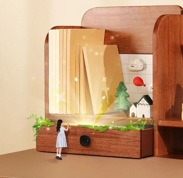 光明园迪M7 120D学习桌为孩子设计了一处秘密空间——“指纹锁抽屉”,可以自由存放一些私人物品,日记本、学生证、零花钱或其他有纪念意义的物品等等。培养独立性,给孩子一个自己的储物空间,让孩子感到被尊重和关爱。