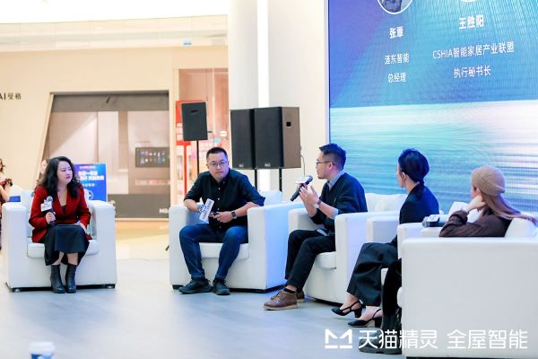 开业仪式圆桌论坛环节,来自家居设计行业的三方伙伴,围绕AI与空间融合共话全屋智能未来发展新趋势。CSHIA智能家居产业联盟执行秘书长王胜阳表示,在物联网及AI技术演进驱动下,空间智能化必将是下一个万亿级赛道,天猫精灵在AI大模型、连接技术与混合组网技术的积累,为全屋智能落地提供了坚实基础。润舍纳图设计创始人李雪认为全屋智能对设计语言提出了更高要求,“智”与“美”的融合,将会是大势所趋。小红书知名家居博主阿元仔认为用户对全屋智能的接受度与日俱增,但施工、连接、设备适配度,仍是其难以普及的主要痛点。