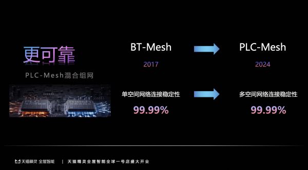 同时,天猫精灵还能为用户提供更可靠的连接方式,以及覆盖施工部署、设备拓展、品牌保障的全链路贴心服务。基于PLC-Mesh融合网络架构,天猫精灵解决了复杂多空间布线问题与空间设备部署灵活性问题。同时,PLC设备和Mesh设备支持即插即用,前后装均可以随时扩展,整个施工过程无需网络,从设计到施工更加灵活便捷。
