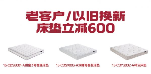 对于掌上明珠家居的老客户来说,这次双11更是一个绝佳的焕新机会。只要你持有旧床垫,就可以参与以旧换新活动,享受床垫立减600元的优惠!不论是三分区独立袋装弹簧还是6圈独立袋装弹簧加贝卡特针织面料,参与活动的三款床垫均是掌上明珠热销产品,让你的家居生活更加舒适、健康!活动时间有限,有床垫换新需求的客户一定不要错过了。