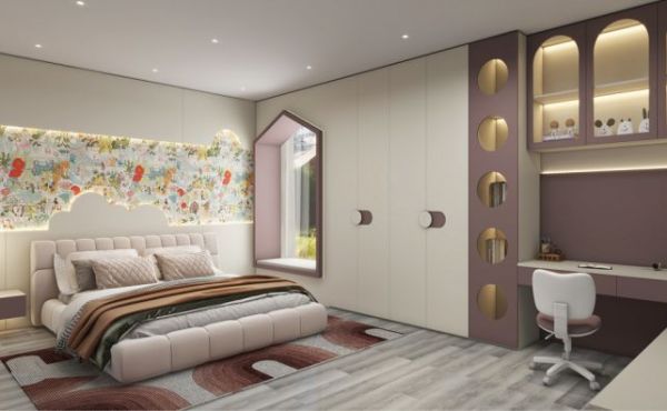 贴合儿童的生活习性,配色上更为活泼灵动,童心童趣的艺术造型,融合清新柔和的“白芷”与“藕粉”,儿童房的童趣温馨稳稳拿捏。