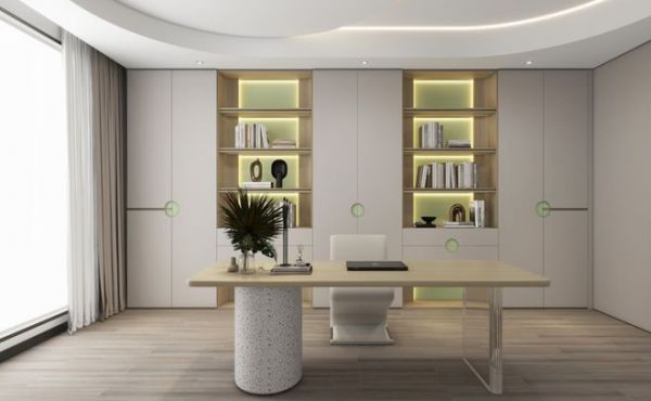 书房以温馨的白色调为主,增添浓郁的温暖氛围,让人沉浸于书香墨韵之中。绿意盎然的“夏柠”作为点缀色,清新脱俗的配色,宛如春风拂面,带来生机勃发感,让工作学习轻松愉悦。