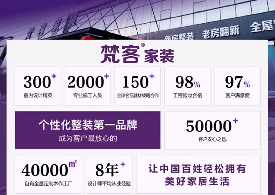 梵客家装创办于2007年,中国建筑装饰协会会员单位,大型家居装饰企业,17年专注一站式整装并致力于将梵客打造成为客户最放心的个性化整装第一品牌,让中国百姓轻松拥有美好家居生活。
