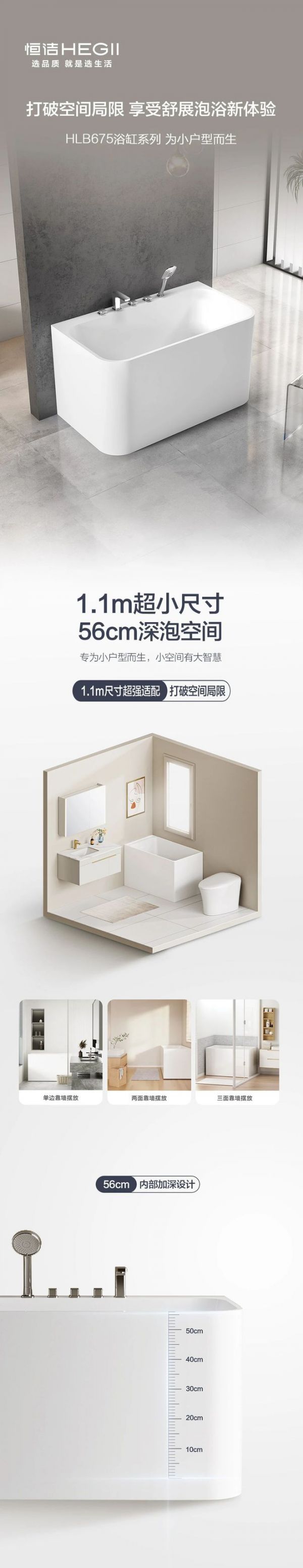 HLB675浴缸系列 为小户型而生,打破空间局限享受舒展泡浴新体验。