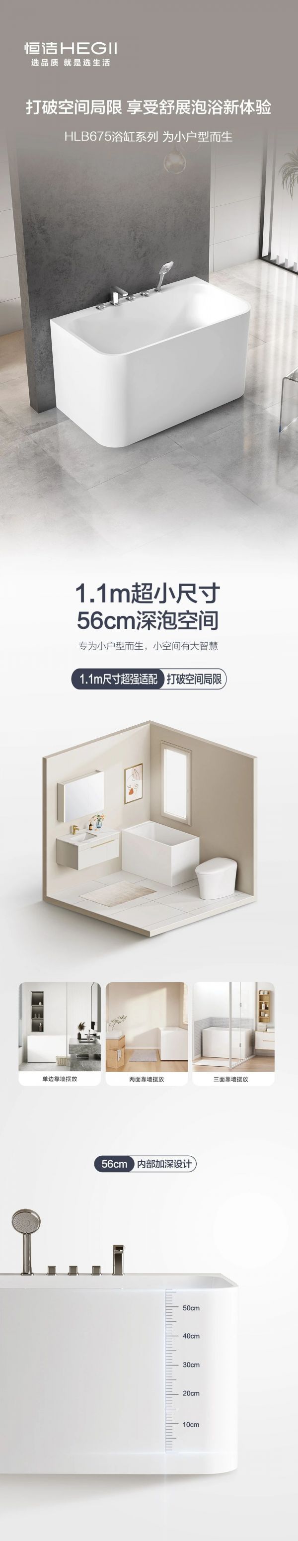 恒洁HLB675浴缸系列 打破空间局限享受舒展泡浴新体验