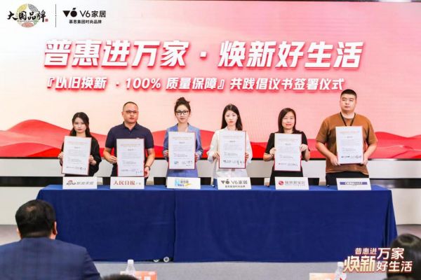 10月21日,V6家居联合新华网开展以旧换新全民普惠行动,以“3重补贴、2大升级、7大承诺”推出价格优惠、品质优异的家居产品,为行业以旧换新行动的开展树立了标杆。为保证此次活动的真实性和可靠性,V6家居还与新华网、人民日报客户端、凤凰家居、新浪家居、中国日报多家主流媒体签署“以旧换新100%质量保障”共践倡议书,宣告全面接受央媒、消费者的监督,致力于让消费者以更加优惠的价格,享受到大牌家居的产品体验。