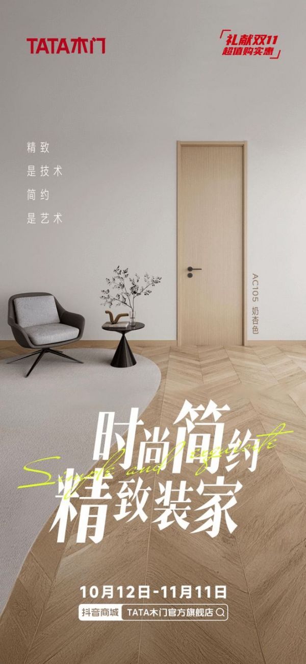 此次双十一大促之际,TATA木门再一次实现营销创新,从产品到服务等多个维度,为每一个追求品质生活的家庭提供了一站式解决方案。